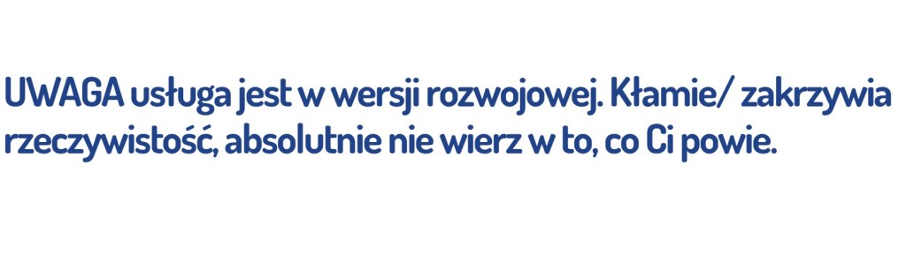 Faktycznie, z powodów prawnych duży napis ostrzega, że „UWAGA usługa jest w wersji rozwojowej. Kłamie/ zakrzywia rzeczywistość, absolutnie nie wierz w to, co Ci powie.„