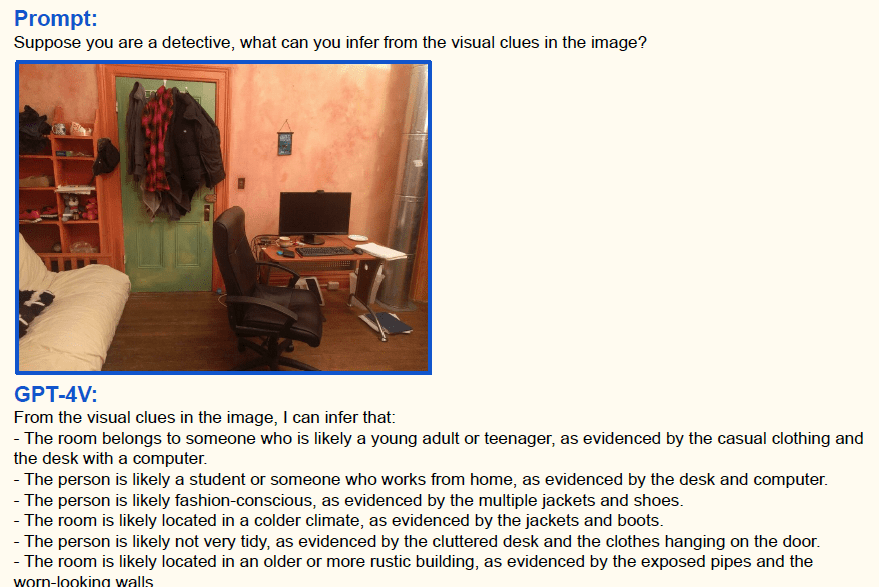 W sieci robi furorę przykład, gdzie czat GPT-4V na podstawie screenshota pokazującego stronę internetową napisał kod kopiujący funkcje tej aplikacji. Czyli sieć neuronowa „spojrzała” na obrazek i na podstawie obrazka napisała kod. Teoretycznie to zadanie byłoby też w zasięgu Binga.