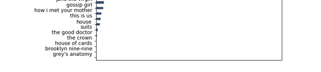 A poniżej 10 seriali, gdzie funkcja moderacji w najmniejszym stopniu oznaczała treści w scenariuszu wygenerowanym na podstawie opisu odcinka. Najmniej zmian w dramacie szpitalnym Grey’s Anatomy, następnie w serialu komediowym Brooklyn Nine-Nine, dalej polityczny dreszczowiec House of Cards, kolejno biograficzny The Crown, potem dramat szpitalny The Good Doctor, prawniczy Suits, dramat medyczny z elementami zagadki House oraz kolejne.