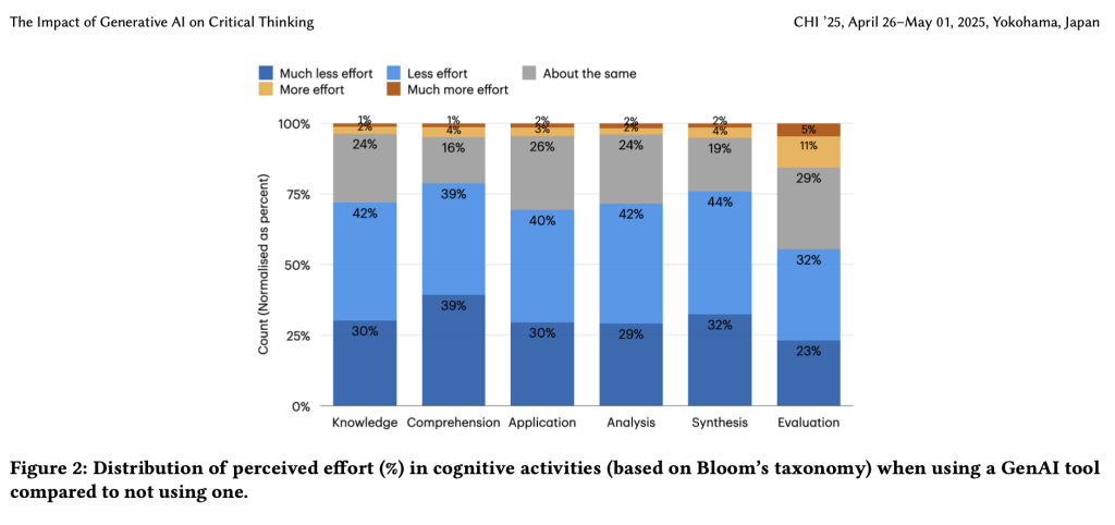 Przeczytałem uważnie badanie „The Impact of Generative AI on Critical Thinking: Self-Reported Reductions in Cognitive Effort and Confidence Effect From a Survey of Knowledge Workers” (tłum. moje: Wpływ GenAI na zdolność krytycznego rozumowania. Samoocena zmniejszonego wysiłku poznawczego i Efekt Pewności jako wnioski z badania pracowników umysłowych). Na końcu wpisu podaję moje sposoby na utrzymanie krytycznego myślenia podczas pracy z użyciem sztucznej inteligencji.
